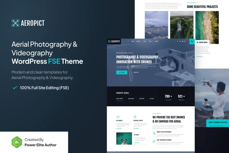 Aeropict là một WordPress Theme hiện đại, thiết kế sạch sẽ, đặc biệt dành cho Drone Aerial Photography & Videography. Ngoài ra, Aeropict còn hoàn hảo cho Film Maker, Movie Studio, Production House, Videography, Photography, Creative Agency và các lĩnh vực kinh doanh liên quan. Tương thích hoàn toàn với WordPress Block Editor, Aeropict giúp việc tùy chỉnh trở nên dễ dàng và cung cấp đầy đủ công cụ cần thiết để bạn xây dựng website thể hiện chính xác thương hiệu của mình.