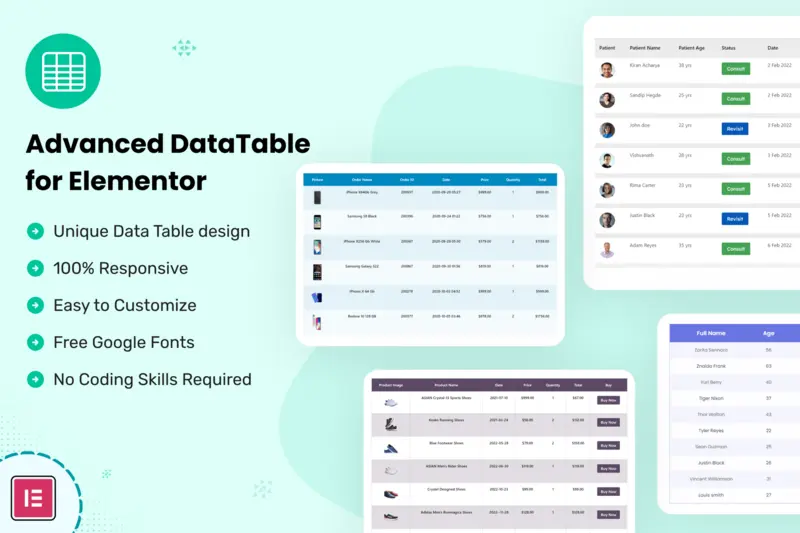 Điểm nổi bật của Datalentor – Advanced DataTable for Elementor