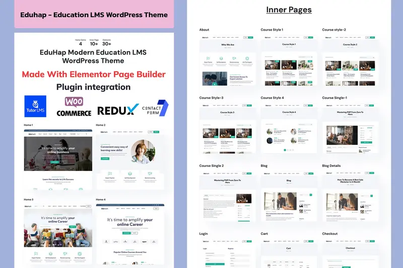 Mở khóa tiềm năng giáo dục trực tuyến với Eduhap – Education LMS WordPress Theme, plugin LMS WordPress tối ưu dành cho nền tảng học tập hiện đại. Được xây dựng trên Elementor Page Builder, Eduhap mang đến cho bạn tự do sáng tạo không giới hạn để thiết kế trang khóa học theo ý muốn với giao diện đẹp mắt và chuyên nghiệp, giúp website của bạn nổi bật giữa hàng trăm đối thủ.
