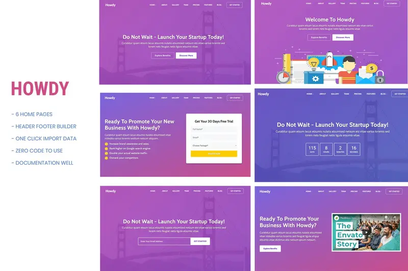 Tính năng nổi bật của Howdy – Multipurpose Landing Page WordPress Theme