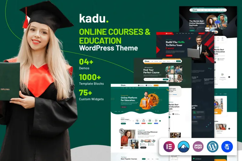 Kadu – Education WordPress Theme là lựa chọn hoàn hảo dành cho các website giáo dục, đào tạo với thiết kế chuyên nghiệp, dễ dàng tùy chỉnh và tích hợp nhiều tính năng mạnh mẽ. Theme hỗ trợ cài đặt demo chỉ với một click, tương thích hoàn hảo với WordPress 6.0+ và được xây dựng dựa trên Elementor Drag & Drop Page Builder giúp việc tạo lập trang trở nên nhanh chóng và trực quan.