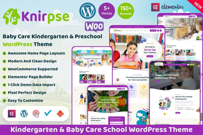 Knirpse Theme là lựa chọn tối ưu cho các dịch vụ Giáo dục trẻ em trực tuyến, Chăm sóc bé, Dịch vụ trường học, Kinh doanh Online trong lĩnh vực mầm non và nhiều hơn thế nữa.