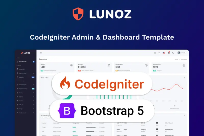 Lunoz – CodeIgniter Admin & Dashboard Template