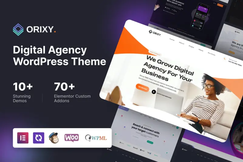 Orixy – Digital Agency WordPress Theme là một Theme hiện đại, linh hoạt và dễ tùy biến, được thiết kế chuyên nghiệp để giúp bạn xây dựng website công ty thiết kế số nhanh chóng và hiệu quả. Với nhiều tính năng nổi bật và hỗ trợ tối ưu cho WordPress, Orixy mang đến trải nghiệm người dùng mượt mà và khả năng mở rộng vượt trội cho mọi dự án.