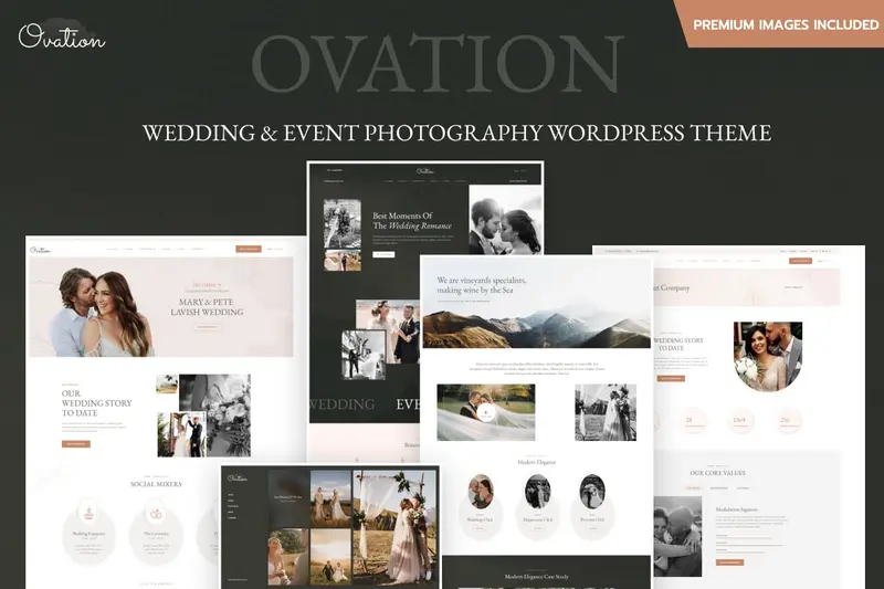 Ovation là một WordPress Theme ấn tượng, tối ưu tốc độ tải trang cao và giao diện chuyên nghiệp, thân thiện với người dùng. Theme phù hợp cho các dịch vụ tổ chức đám cưới, nhiếp ảnh gia đám cưới, sự kiện cưới, nhiếp ảnh gia gia đình, nhiếp ảnh video và tất cả các dịch vụ liên quan đến cưới hỏi.