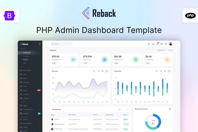 Reback – Bootstrap & PHP Admin Dashboard Template: Giải Pháp Admin UI Kit Toàn Diện Cho Website WordPress