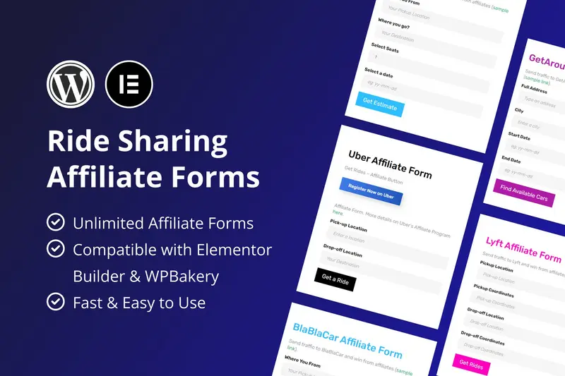 Ride Sharing Affiliate Forms là plugin tối ưu với các form thân thiện, giúp bạn dễ dàng thu thập và quản lý đăng ký affiliate hiệu quả. Plugin cho phép đối tác quảng bá dịch vụ ride sharing của bạn qua các kênh riêng với các form referral tùy chỉnh linh hoạt.