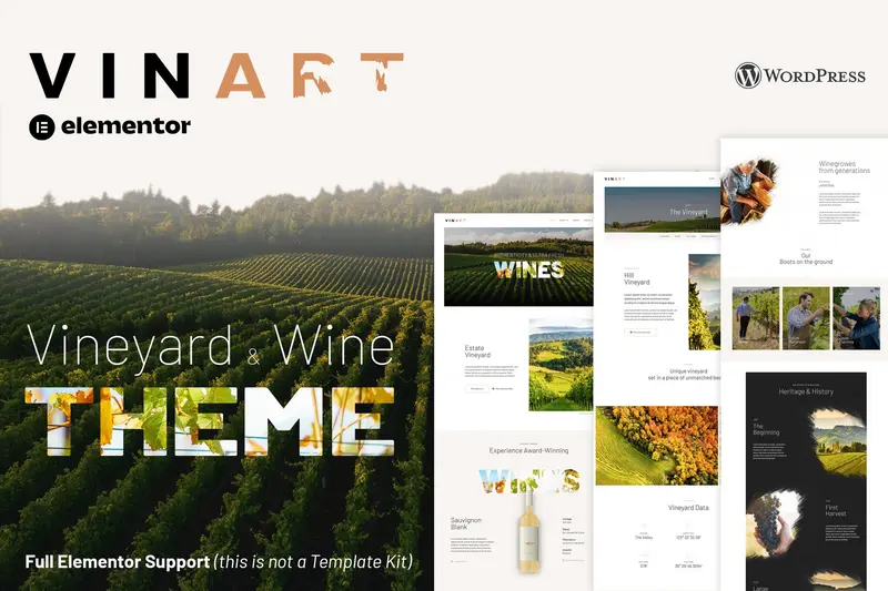 Vinart – Wine WordPress Theme là Theme WordPress đa năng, được thiết kế theo chuẩn web mới nhất và hoàn toàn tương thích với Elementor. Đây không phải là một Elementor Template Kit, mà là một Theme đầy đủ tính năng giúp bạn dễ dàng xây dựng website cho các nhà máy rượu, vườn nho, nhà hàng, quán bar và nhiều mô hình kinh doanh khác với giao diện sạch sẽ và linh hoạt tuyệt vời.