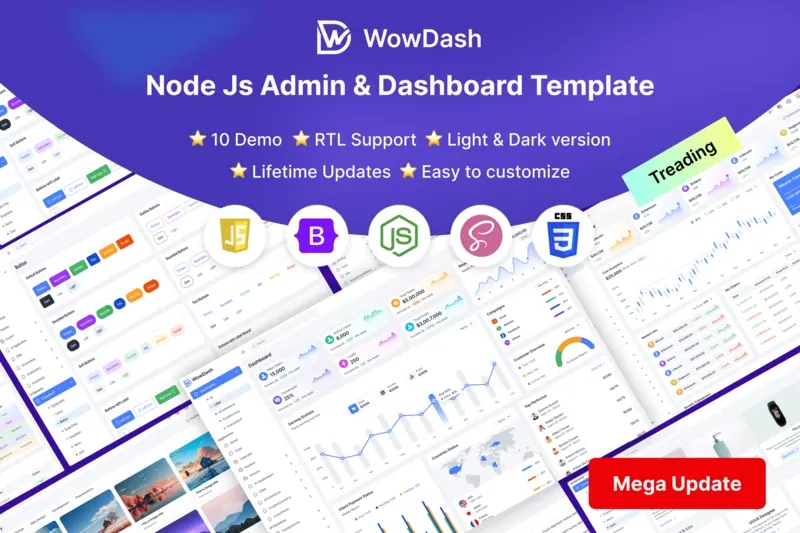 WowDash là một Admin Dashboard Template hiện đại, responsive và hoàn toàn có thể tùy chỉnh, được xây dựng trên nền tảng Node.js. Sản phẩm này thích hợp cho nhiều loại ứng dụng web như bảng điều khiển quản trị, hệ thống quản lý dự án, CRM, CMS và dashboard thương mại điện tử. Với thiết kế sạch sẽ và đầy đủ tính năng, WowDash tạo nền tảng vững chắc cho mọi ứng dụng backend.