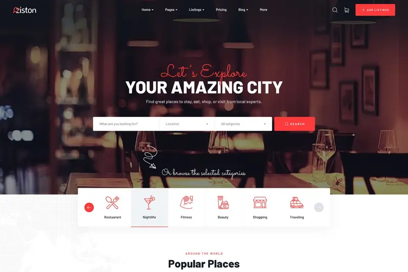 Ziston – Directory Listing WordPress Theme là một theme WordPress danh bạ mạnh mẽ giúp bạn dễ dàng tạo, quản lý và kiếm tiền từ các website danh bạ địa phương hay toàn cầu. Theme này rất thân thiện và phù hợp với nhiều loại hình kinh doanh như nhà hàng, quán cafe, rạp chiếu phim, cũng như các địa điểm như bảo tàng, khách sạn, spa và nhiều hơn nữa, giúp bạn giới thiệu những địa điểm đáng chú ý nhất trên bản đồ toàn cầu.